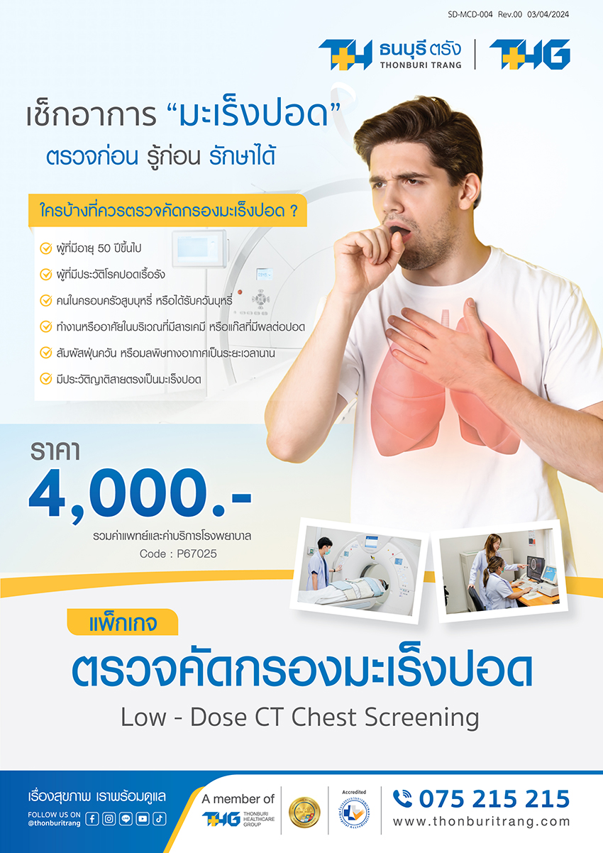 “ผมสูบบุหรี่มากว่า 30 ปี หมอแนะนำให้ตรวจ Low-Dose CT ที่ธนบุรีตรัง สแกนไม่ถึง 15 นาที รู้ผลเร็วและละเอียดมากครับ”