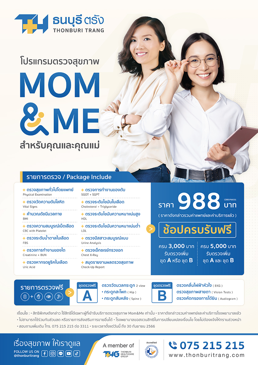โปรแกรมตรวจสุขภาพ MOM&ME สำหรับคุณและคุณแม่ ราคา 988 บาท ช้อปครบรับฟรี!