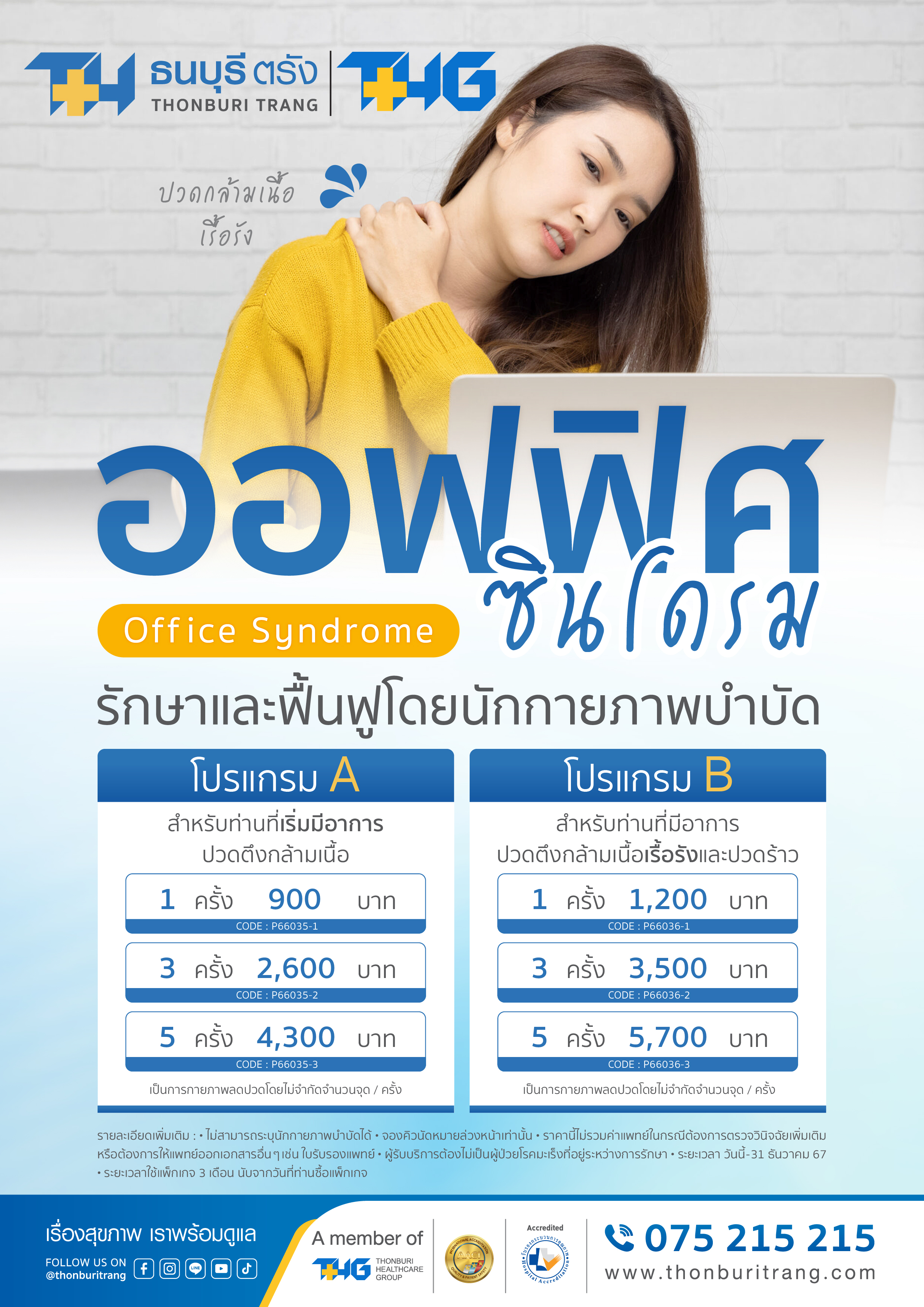 โปรแกรมรักษาออฟฟิศซินโดรม ที่โรงพยาบาลธนบุรีตรัง