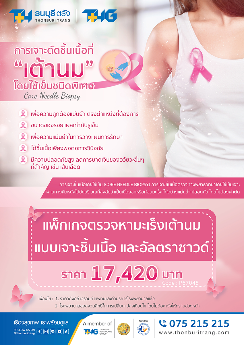 ตรวจมะเร็งเต้านมแบบเจาะชิ้นเนื้อ (Core Needle Biopsy) ที่โรงพยาบาลธนบุรีตรัง