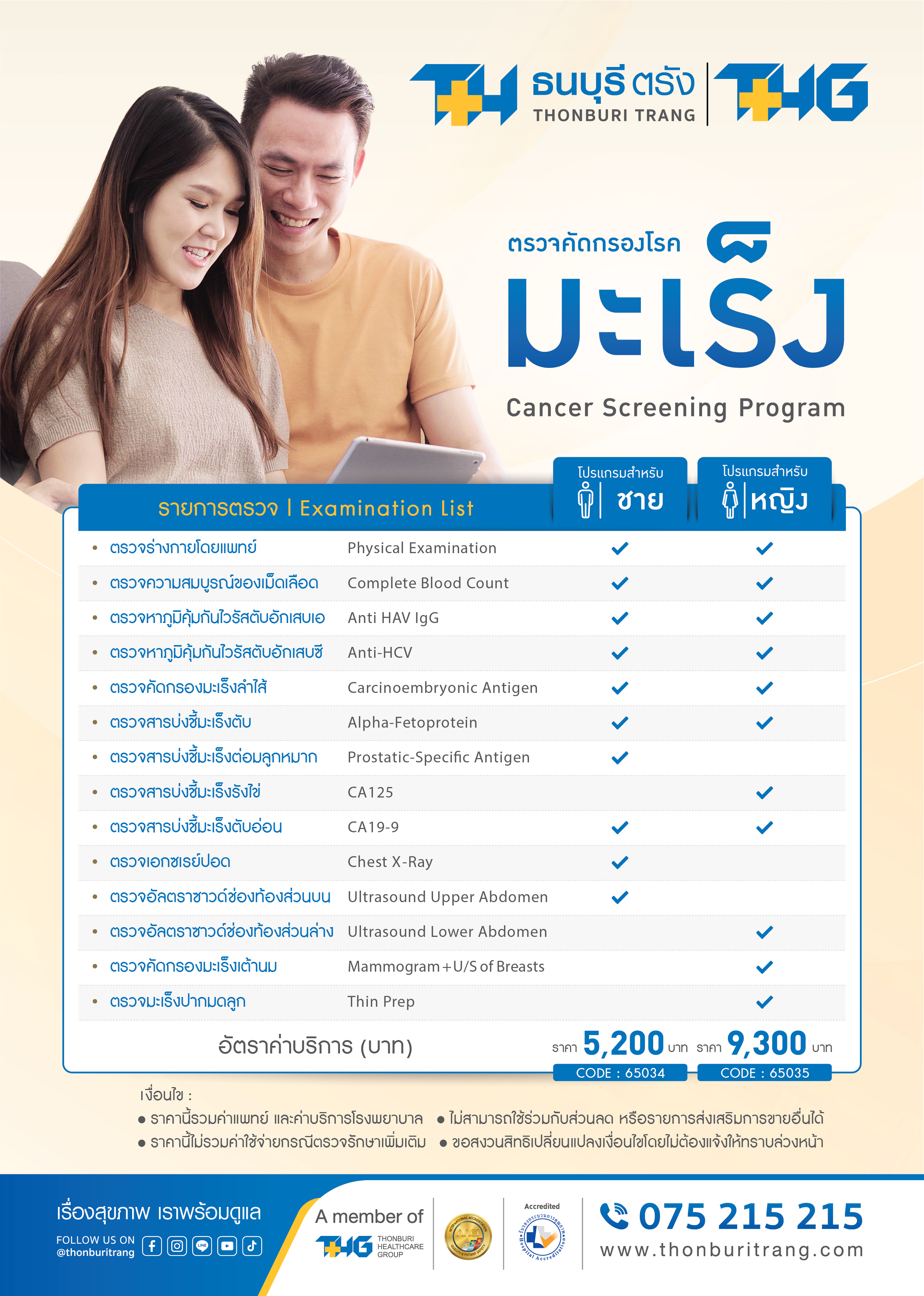 โรงพยาบาลธนบุรีตรังเปิดบริการ โปรแกรมตรวจคัดกรองมะเร็ง (Cancer Screening Program)